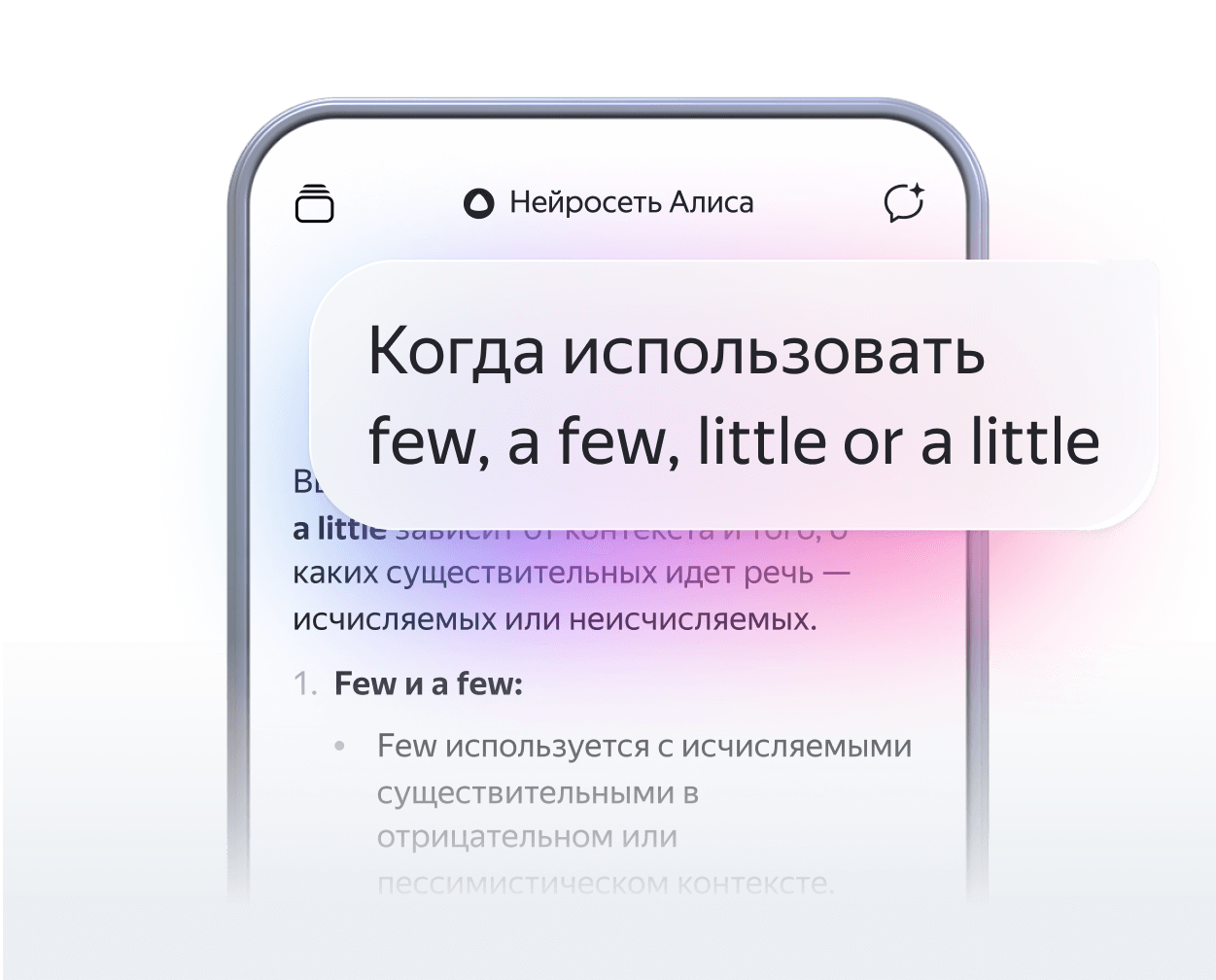Искать ответыВ Поиске Алиса сразу даёт ответ вместо тысячи ссылок. А если столкнулись с огромным текстом — найдёт в нём нужное за пару секунд.
