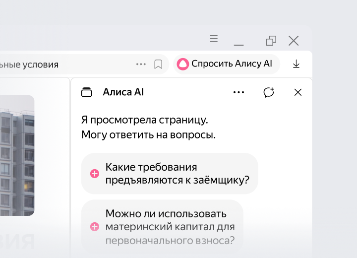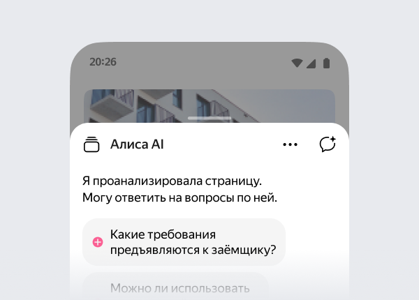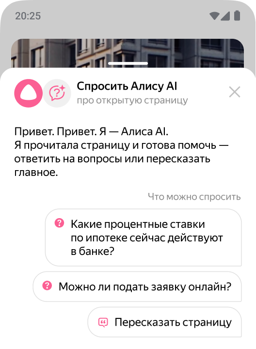 Откройте любую страницу — Алиса AI понимает, что на ней. Она кратко перескажет главное и ответит на вопросы.