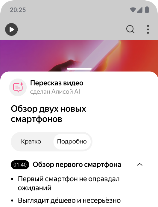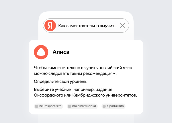 Чтобы быстро найти информацию в статье, документе или видео — спросите Алису AI.