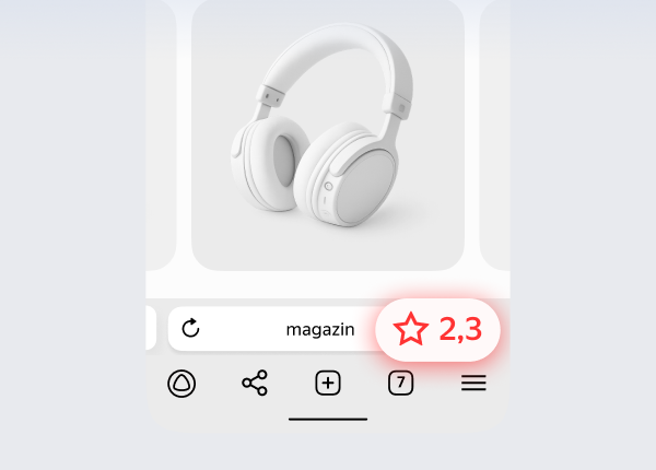 Рейтинг и отзывы на магазин можно увидеть в Умной строке