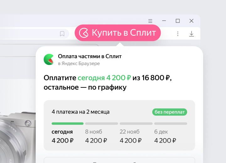 Оплату в Браузере можно делить на части — со Сплитом