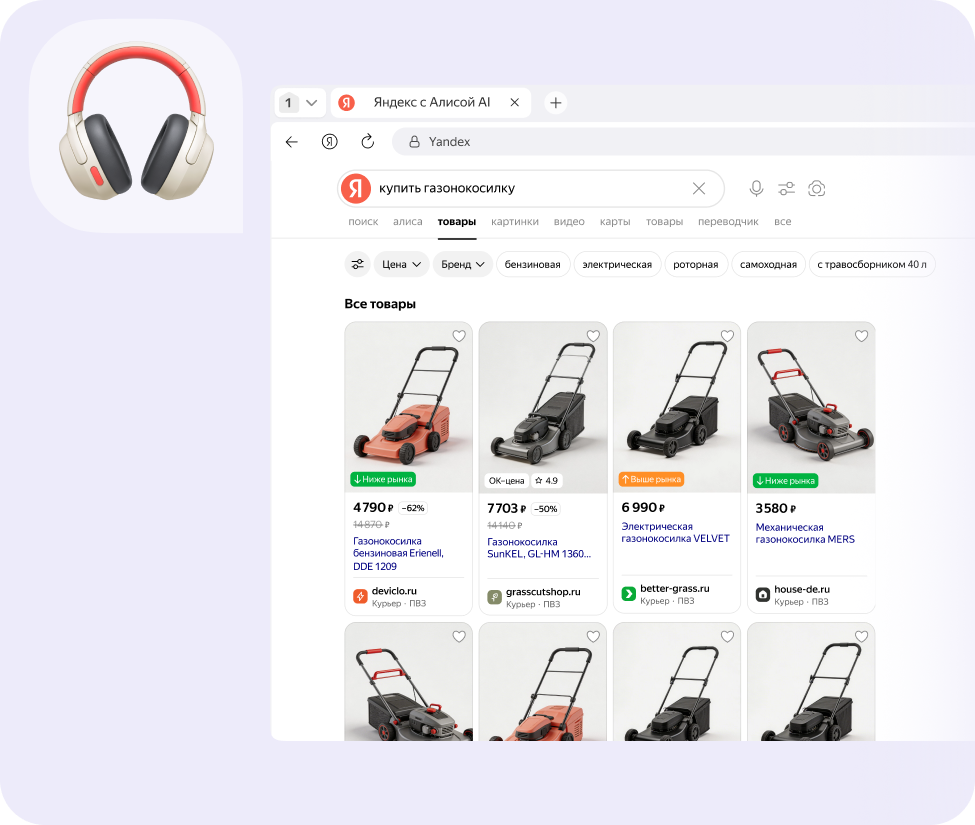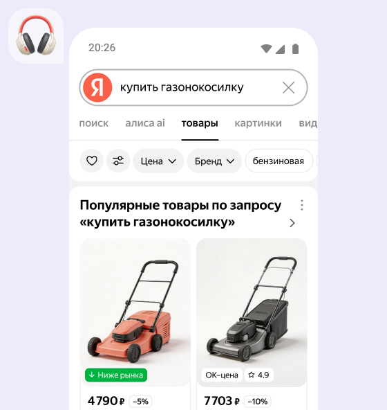 Теперь прямо в Поиске можно не только выбрать товар, но и перейти к покупке с удобной доставкой. А если хочется подешевле, нажмите «Найти скидку».