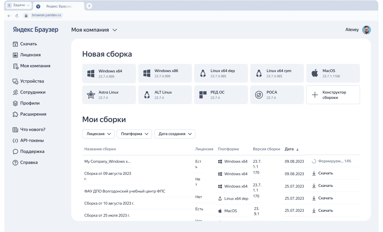Яндекс Браузер для организаций подходит для централизованного развёртывания программного обеспечения. MSI-файл можно скачать в личном кабинете.