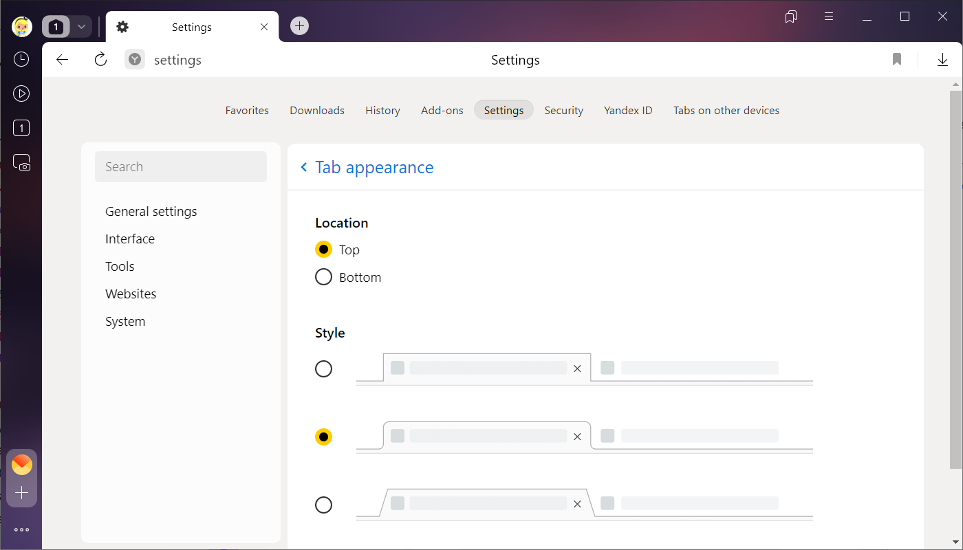 Then the tabs will move to the bottom. To move tabs to the top, go to Tab appearance in the settings and select Top.