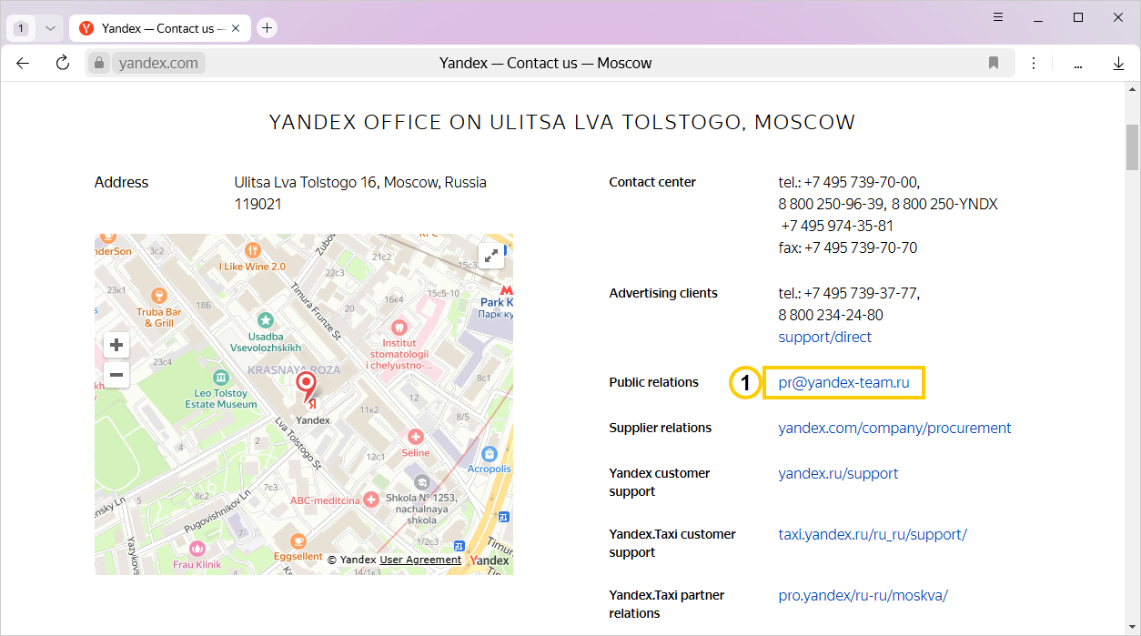 icon displayed to the right of the SmartBox, use the JavaScript console to assign Yandex Mail as the mailto handler: