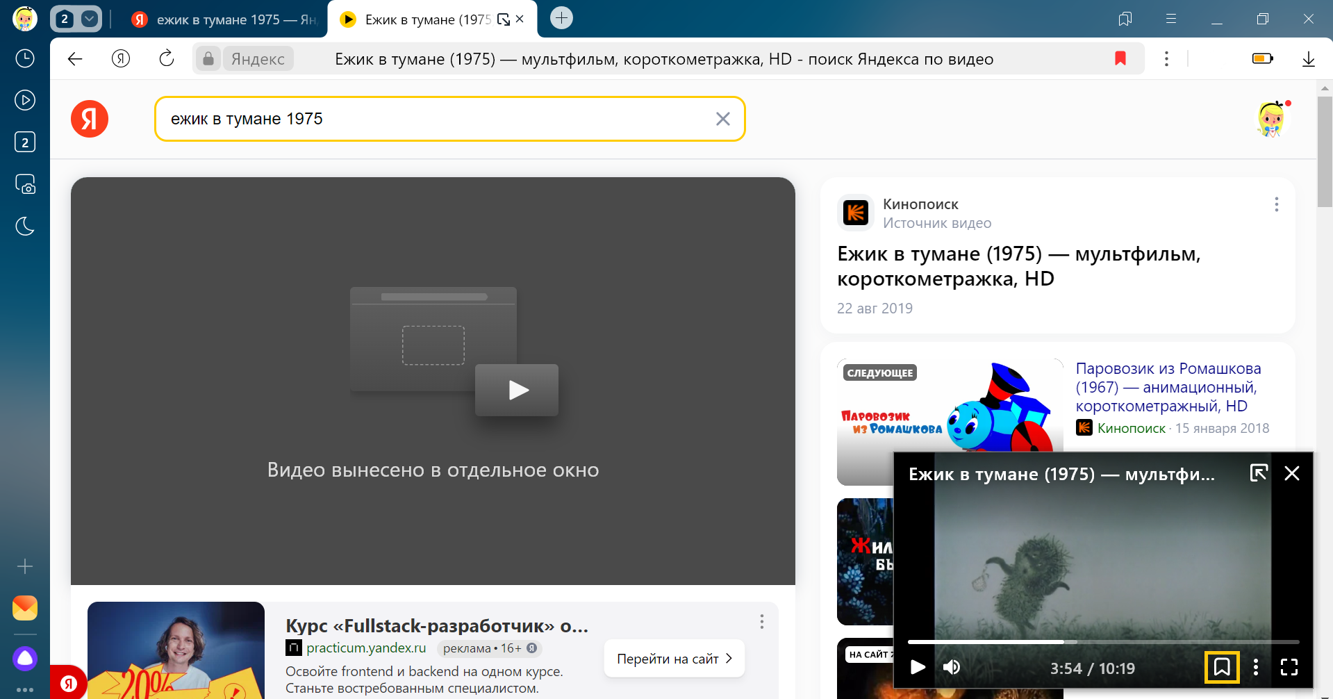 . Откроется отдельное окно с видео. - В отдельном окне в правом нижнем углу нажмите