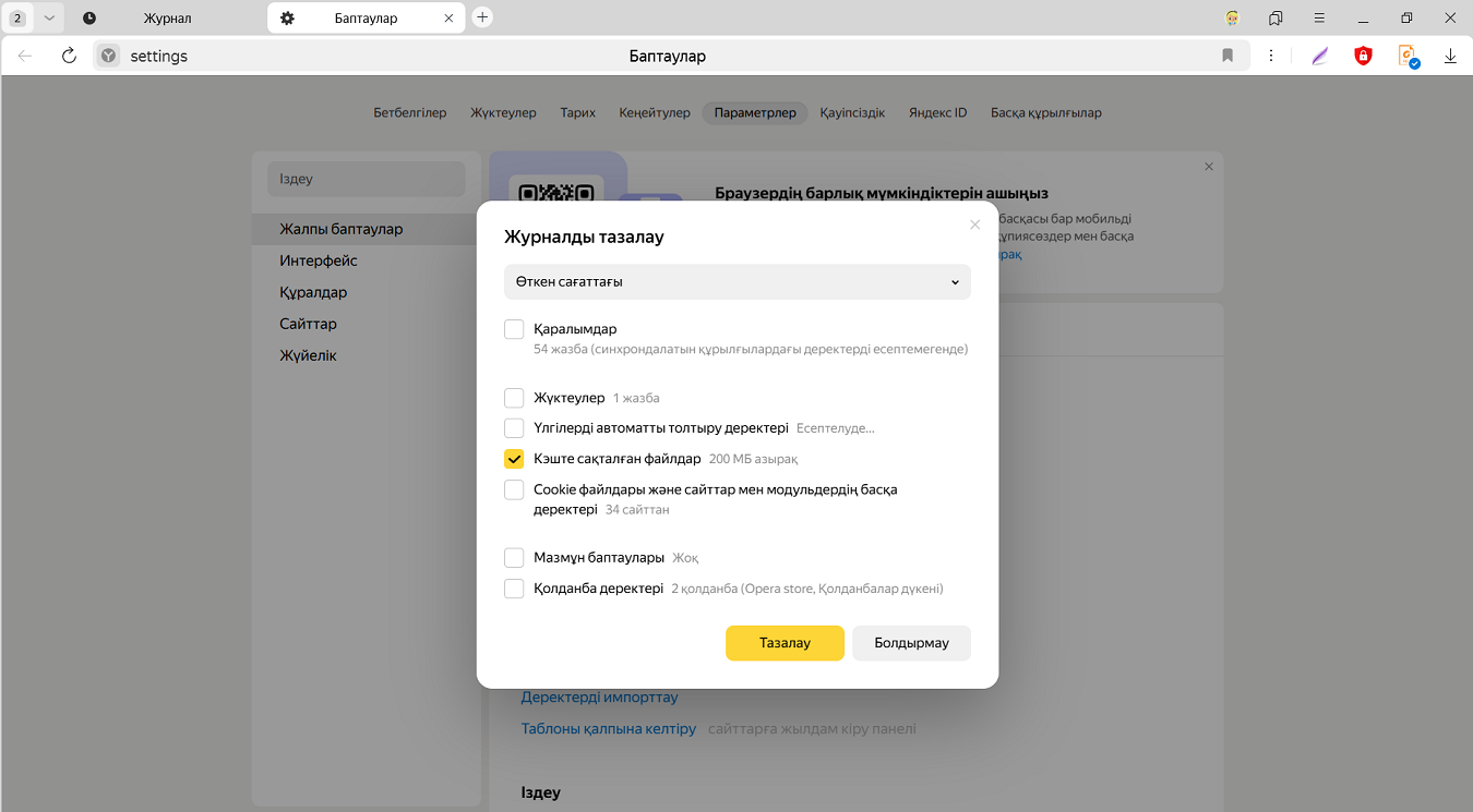 Басқа барлық опцияларды өшіріңіз (тек Браузер кешін тазалағыңыз келсе).