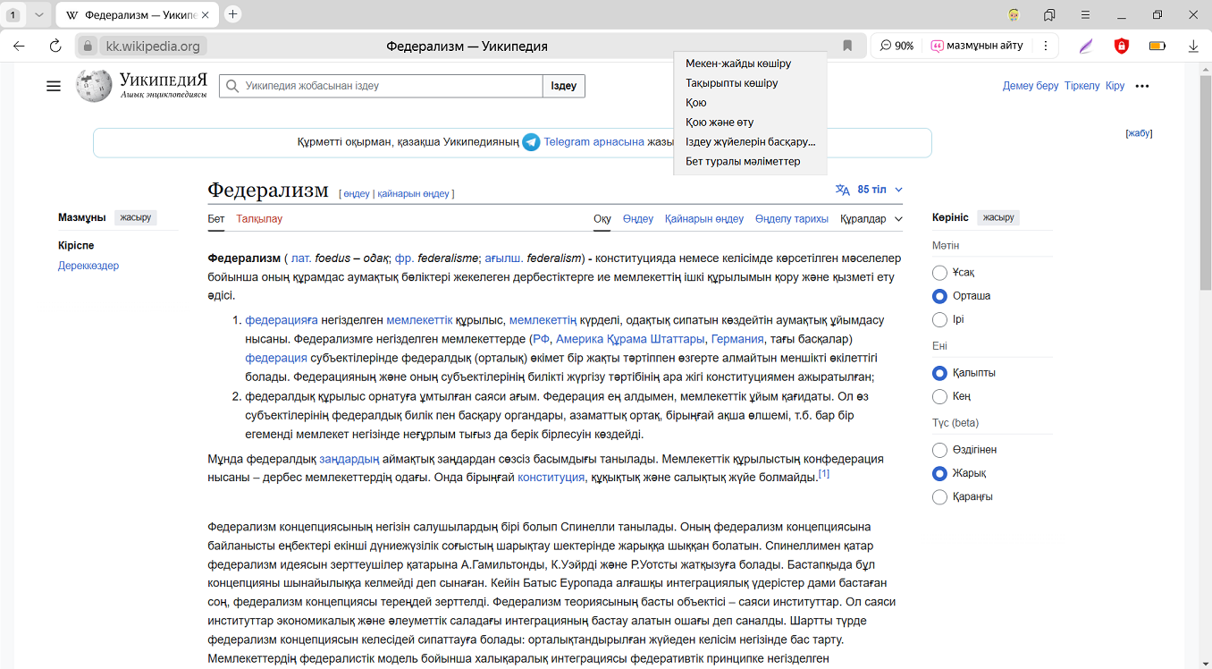 Сайттың көшірмесін сақтау үшін оны ашып, бет мәзірін басыңыз: → Сақтау. Қайда сақтау керектігін және файл форматын таңдаңыз — HTML немесе PDF.
