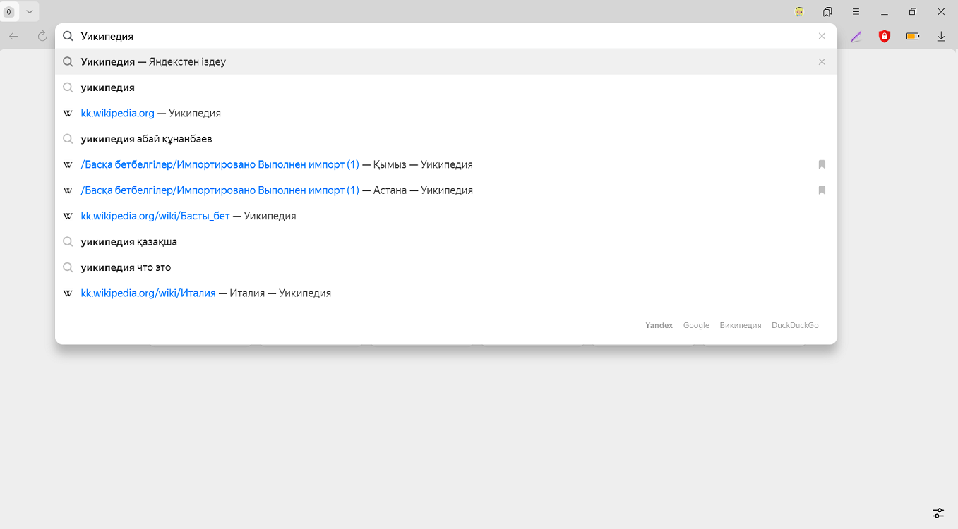 Егер сіз парақша мекенжайын дұрыс терсеңіз, браузер ұқсас мекенжайы бар парақшаларға бірнеше сілтемелерді шығарады немесе оны Яндексте іздеуді ұсынады.