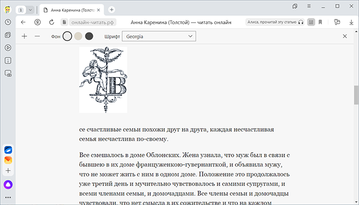 . При переходе на другую страницу или вкладку режим чтения нужно включать заново.
