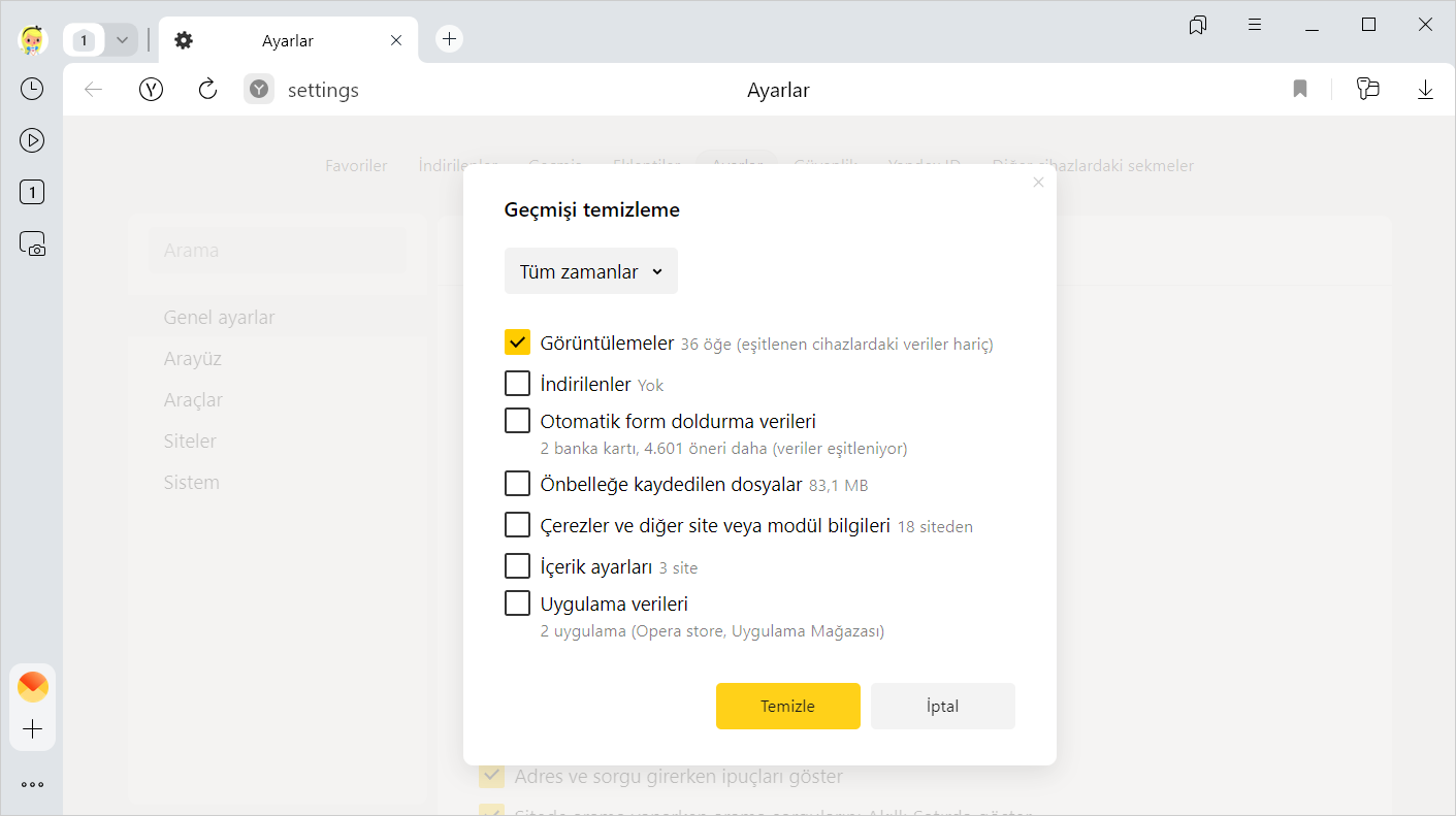 Kullanıcının bilgisayarda ziyaret ettiği sayfaların geçmişi eşitlenir. Tarayıcıyı yeniden kurar ve sonra da eşitlemeyi etkinleştirirseniz, geçmiş verileri