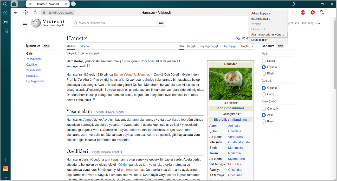 İçerik menüsünde Arama motorlarını yönet... öğesini seçin.