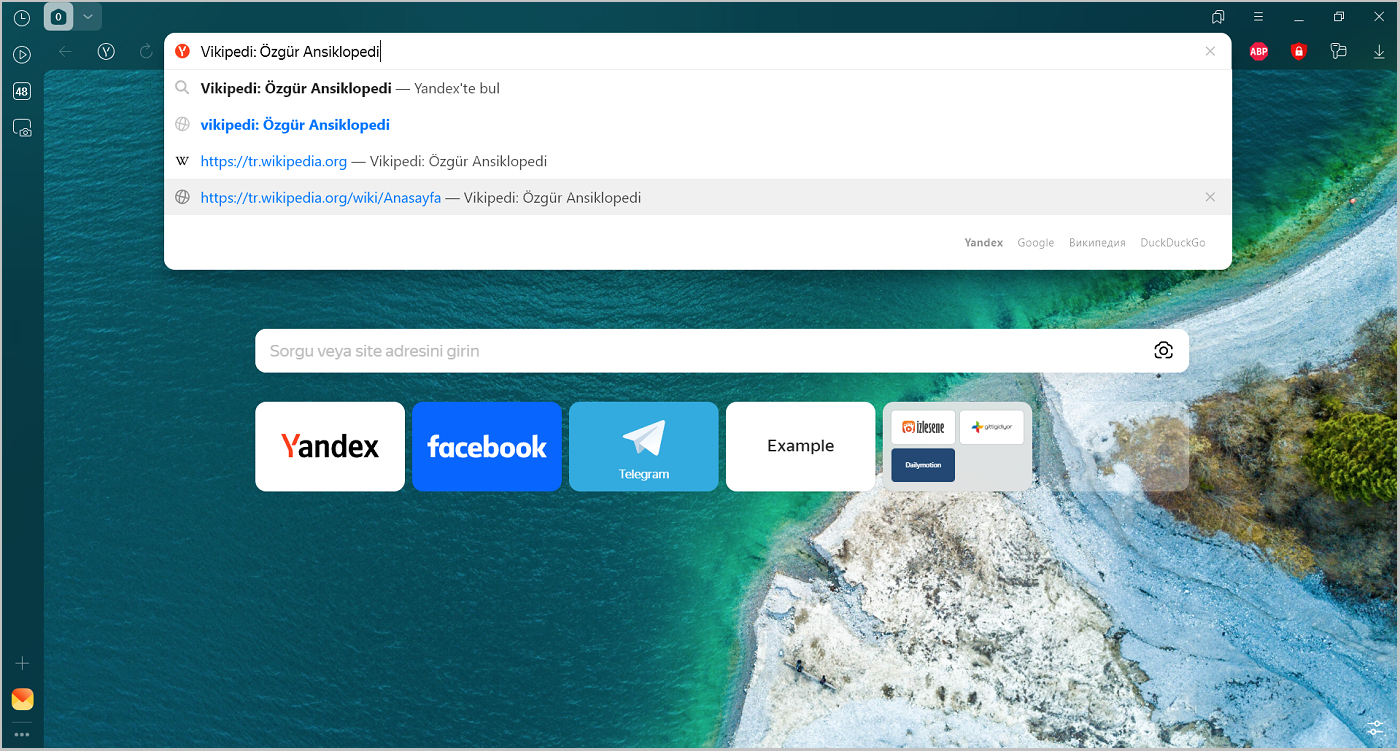 OpenSearch destekleyen bir site için Akıllı satır'a arama sorguları girilebilir (örneğin, tr.wikipedia.org