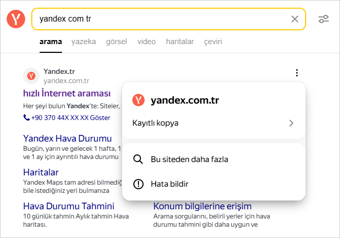 Sitenin Yandex'te kayıtlı kopyası nasıl açılır?